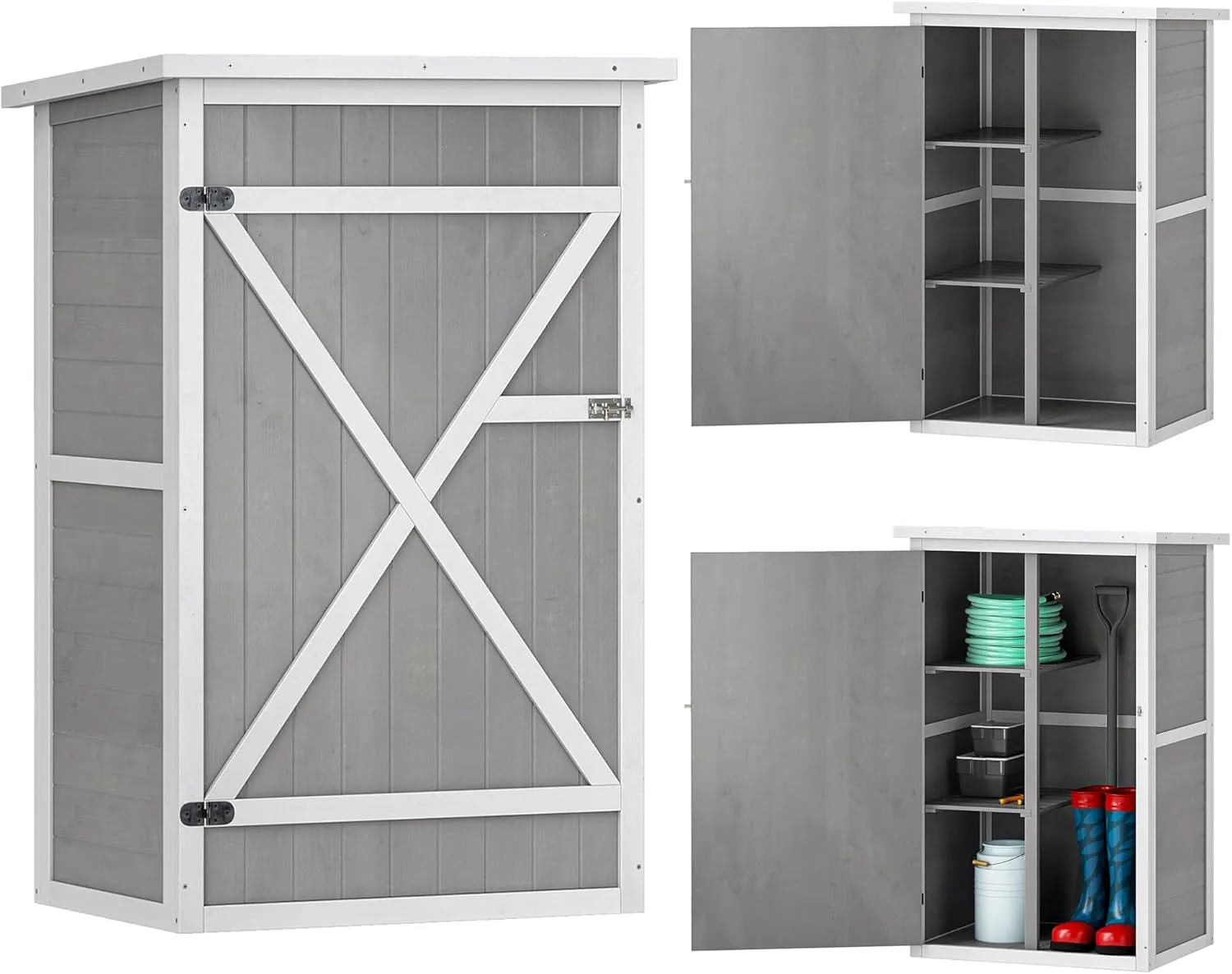 Abri de Jardin en Bois de Sapin avec Toit Bitumé - Grande Porte Verrouillable et 2 Étagères, 75 x 56 x 115 cm