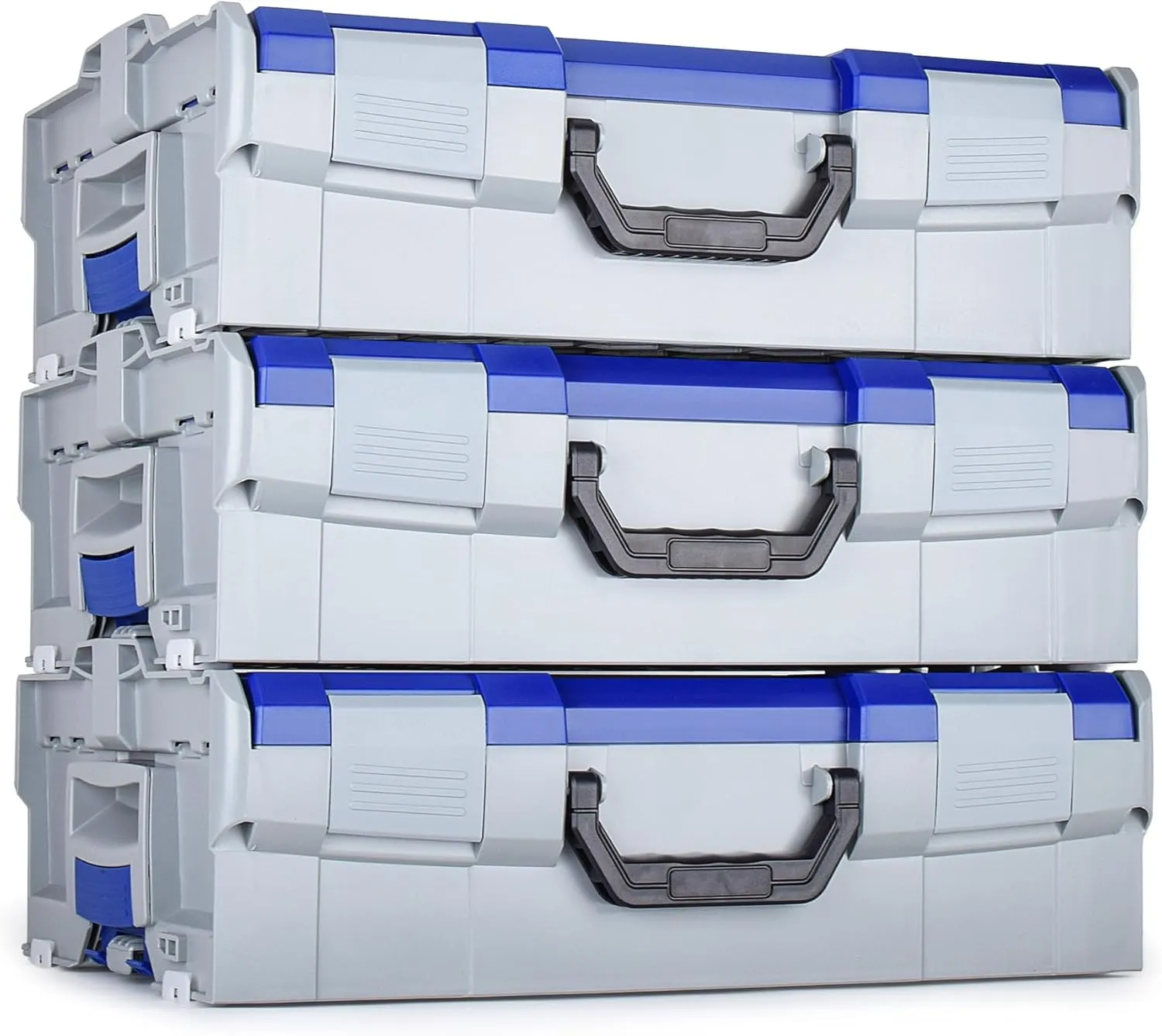 Compatible avec les systèmes Bosch, le set de 3 L-BOXX 136 s'intègre avec le système Sortimo L-BOXX. Conçu en plastique ABS, il assure une protection robuste pour vos outils. Les L-BOXX peuvent être empilées et clipsées entre elles pour un transport modulaire. Équipées d'un couvercle renforcé et d'une fermeture solide, elles sécurisent le contenu lors du transport. Idéal pour une utilisation dans les véhicules équipés Bosch Sortimo, ce système est certifié pour un usage professionnel. Les L-BOXX sont modulaires et peuvent intégrer des éléments Makpac et Systainer avec les adaptateurs appropriés.