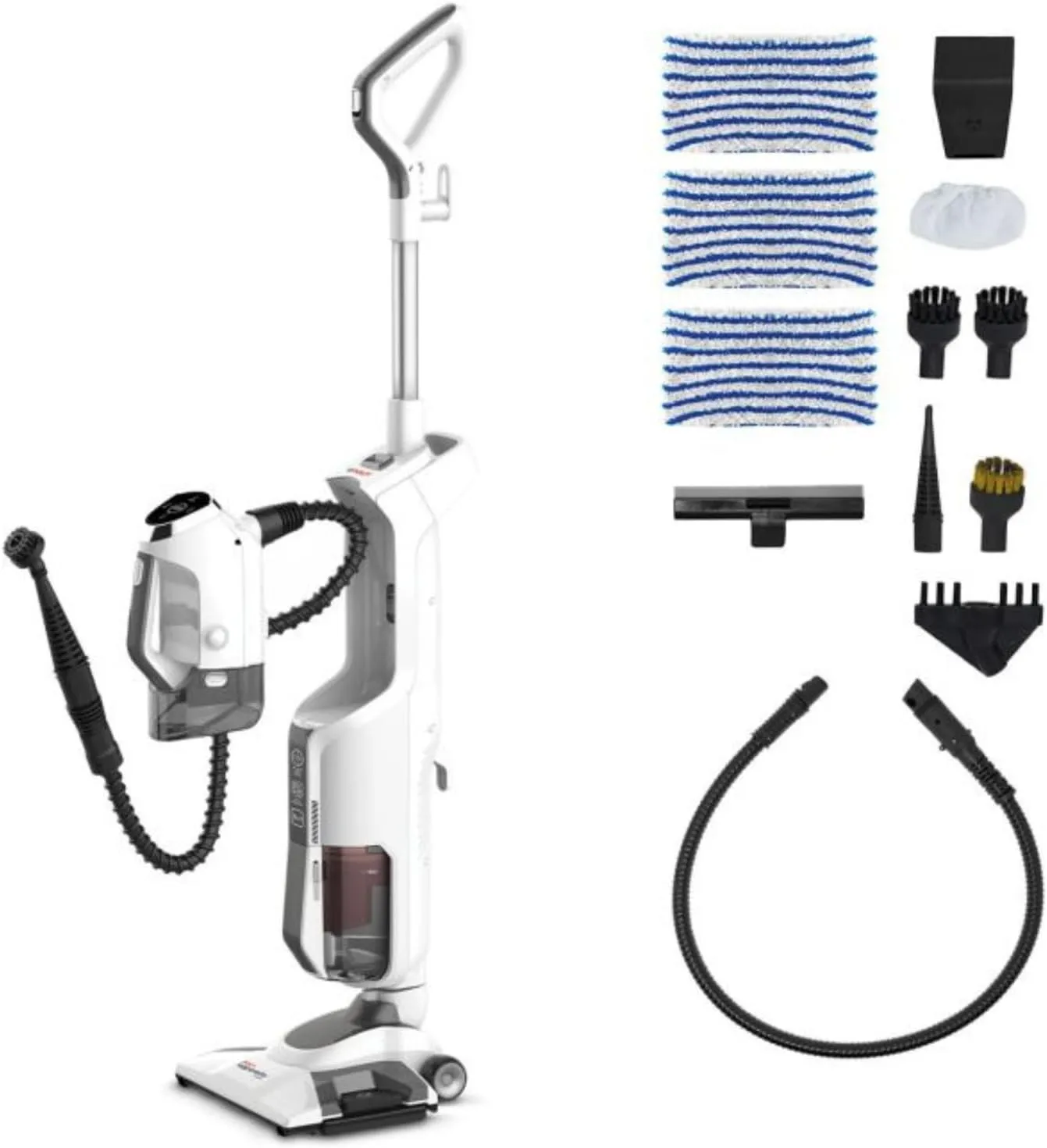 La vapeur des balais vapeur Polti Vaporetto élimine 99,9% des virus, germes et bactéries. Nettoyage écologique avec de l'eau du robinet, sans détergents chimiques grâce à l'action de la vapeur. Convient à plusieurs surfaces, avec 3 réglages de vapeur pour différents besoins de nettoyage. Prêt à l'emploi en 30 secondes, avec un rayon d'action de 7,5 m, un filtre anticalcaire et un réservoir d'eau amovible. Accessoires inclus : 3 serpillières lavables en machine et 9 accessoires pour le nettoyage à la vapeur des petites surfaces. Le Polti Vaporetto 3 Clean est un balai vapeur aspirateur multifonction avec nettoyeur vapeur portable : utilisable uniquement comme aspirateur cyclonique, uniquement comme balai vapeur ou en mode combiné. Le nettoyeur vapeur portable et les accessoires fournis permettent de nettoyer toutes les surfaces lavables de la maison.